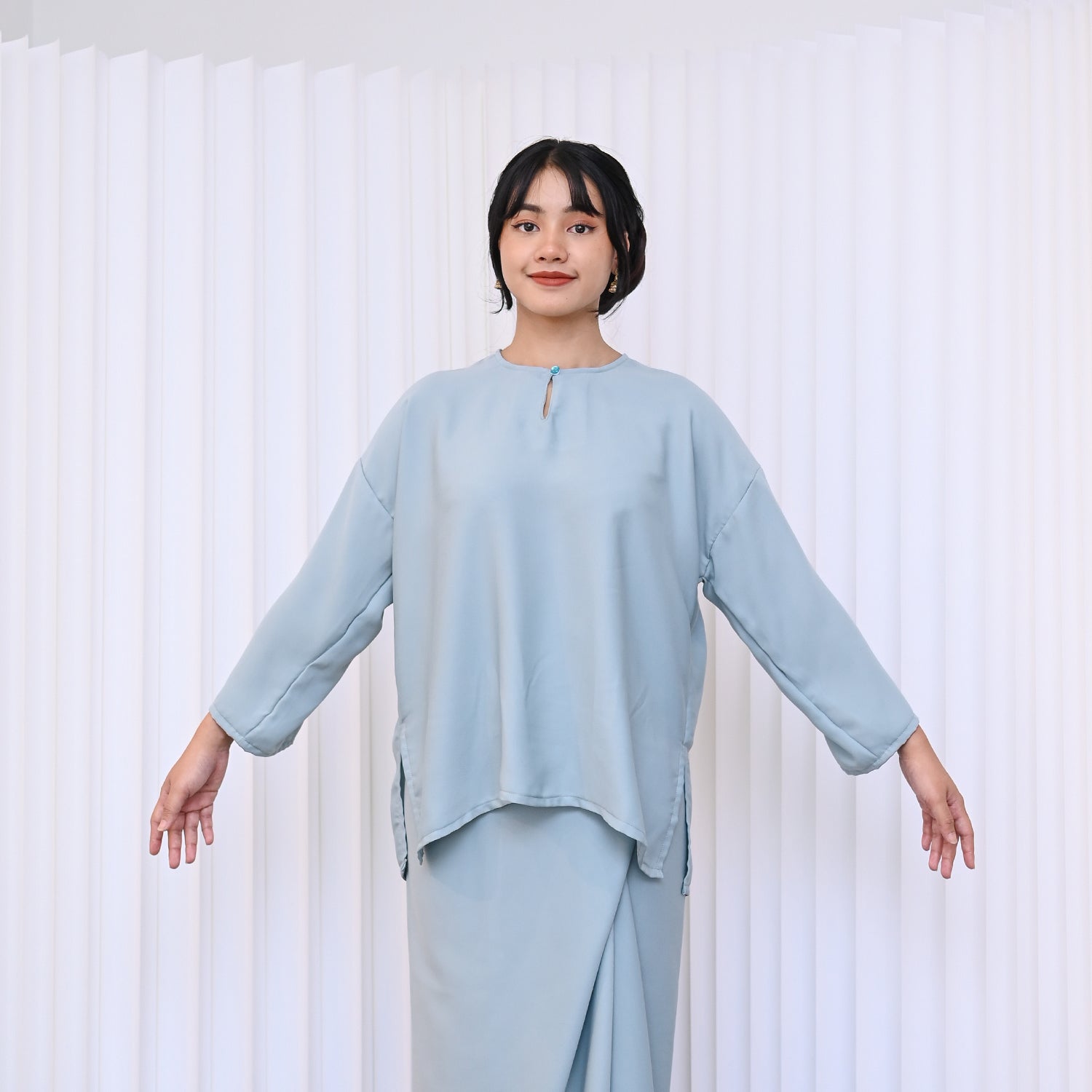 Made from premium rayon polyester. Loose cut top paired with stylish long-laces pareo made Menora Kurung so unique and classy.