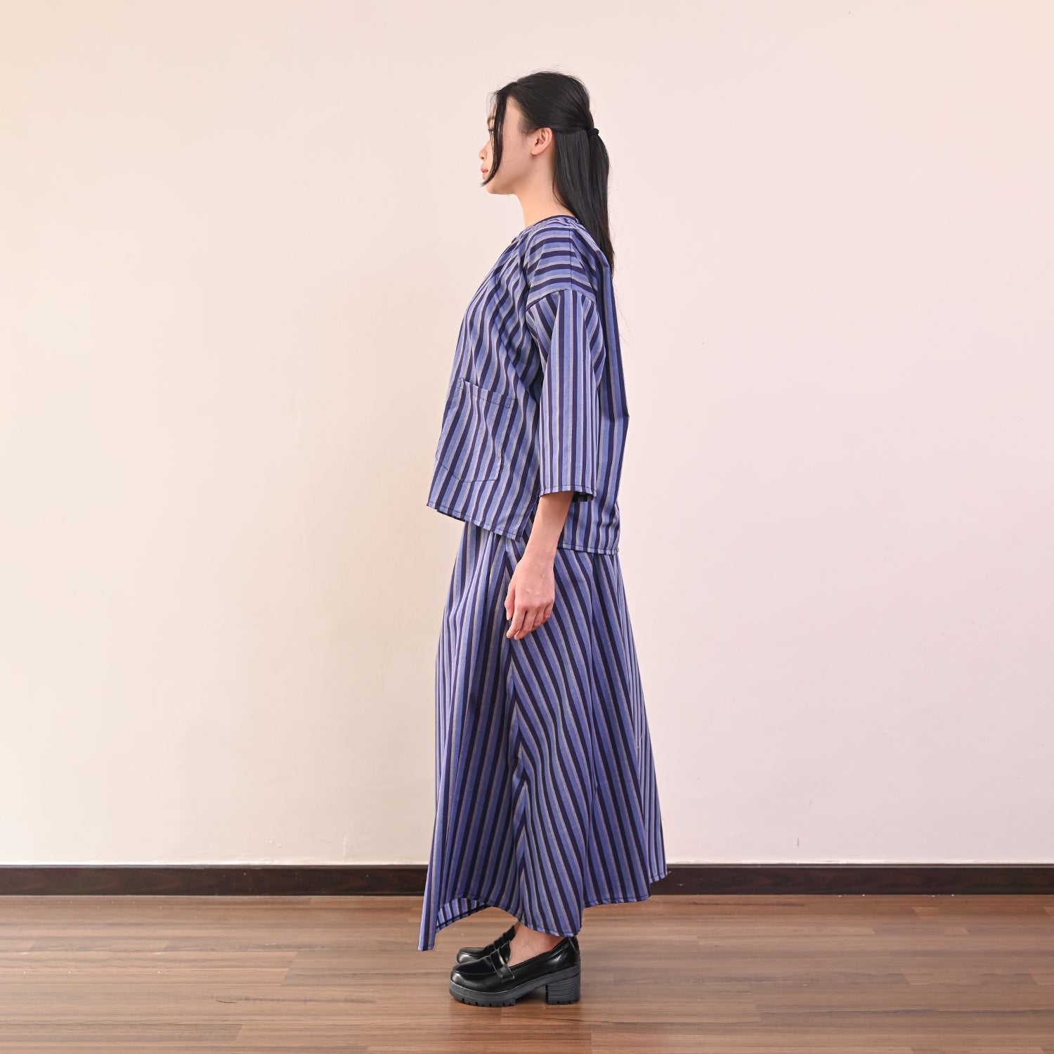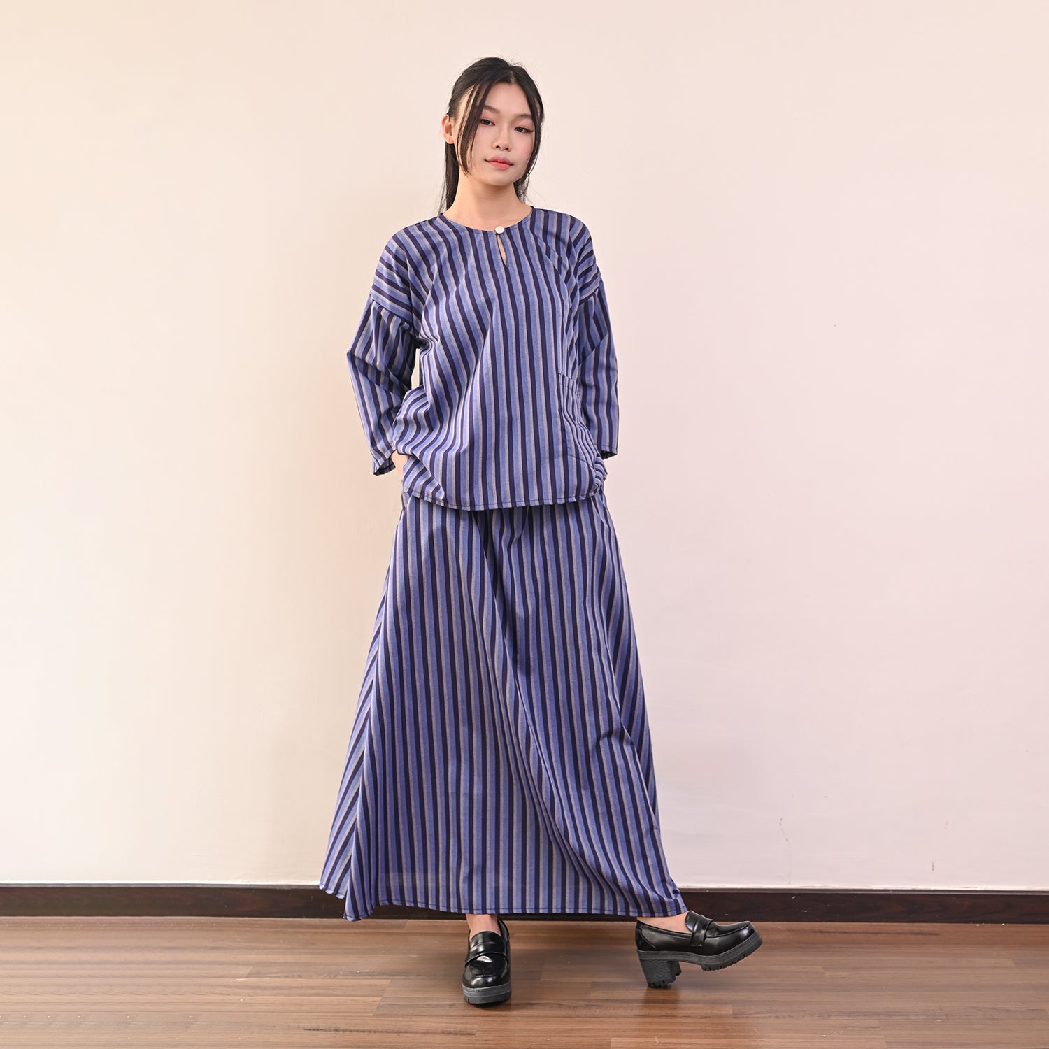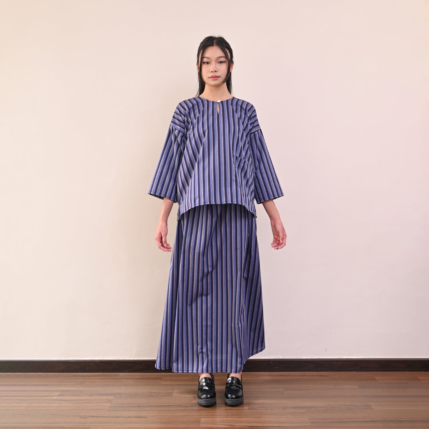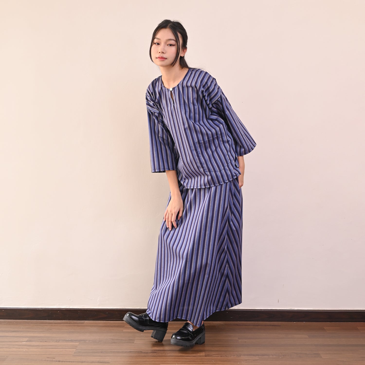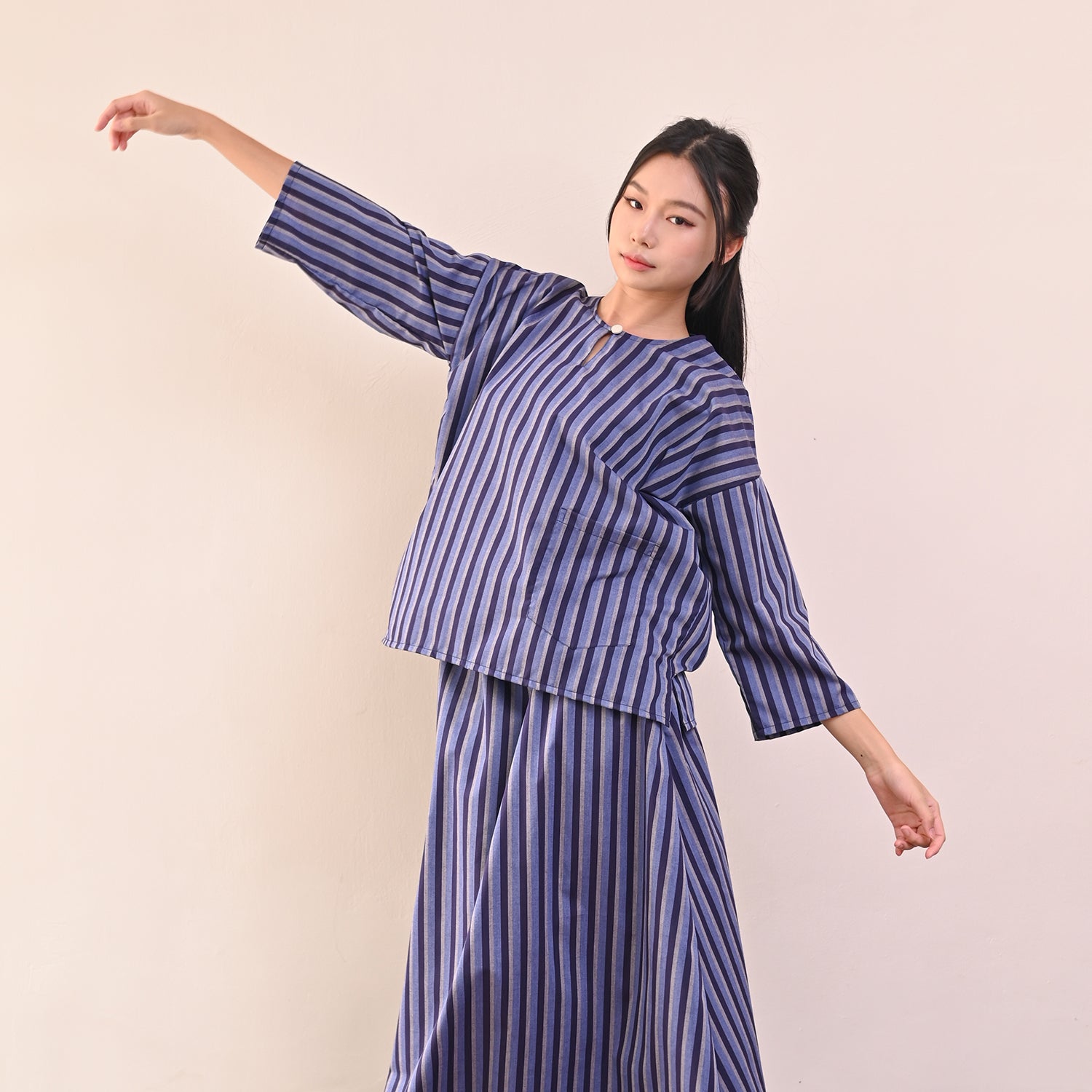 Elevate your style with the Garis Kurung, Mirzen’s latest creation that blends tradition with modern elegance. "Garis," meaning "lines" in Malay, is reflected in the sleek parallel patterns featured on both the top and the matching A-line skirt.