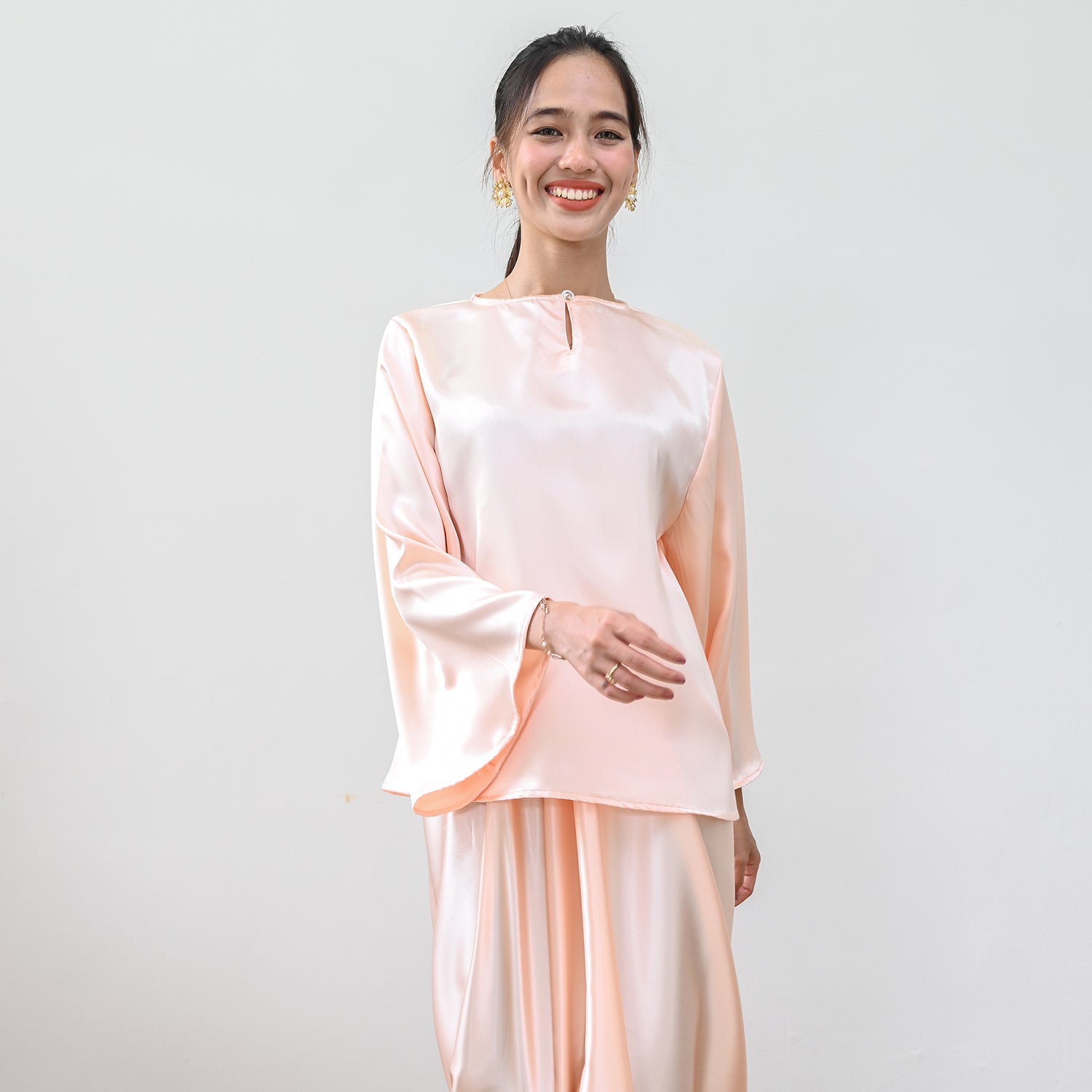 Style the night away in this luxurious Mutia Kurung. Crafted from lightweight and silky satin fabric, this soft and stylish cut promises an instant pario and easy styling. Perfect for weddings and bridesmaids' outfits.