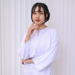 Made from premium rayon polyester. Loose cut top paired with stylish long-laces pareo made Menora Kurung so unique and classy.