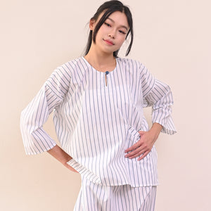 Elevate your style with the Garis Kurung, Mirzen’s latest creation that blends tradition with modern elegance. "Garis," meaning "lines" in Malay, is reflected in the sleek parallel patterns featured on both the top and the matching A-line skirt.