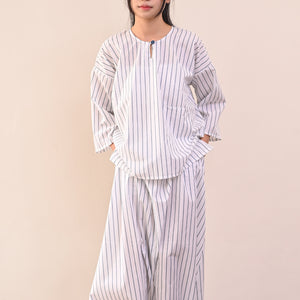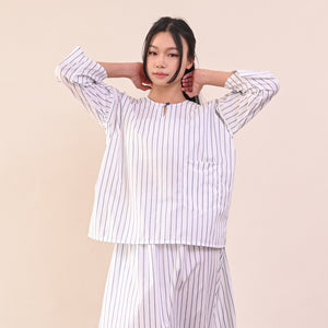 Inspired by the classic Kurung Kedah, the top comes with a functional front pocket, while the loose-cut skirt ensures comfort and flow. Available in two distinct variants, the Garis Kurung adds a touch of sophistication to any occasion.
