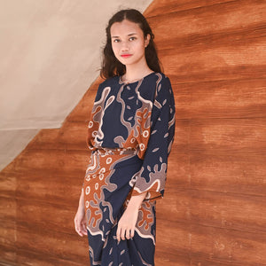 Boasting a loose and comfortable cut adorned with shimmering gold finishing, Matoa Kurung exudes effortless glamour while ensuring ease of wear. The addition of a stylish pario featuring a long string adds a contemporary touch, enhancing its allure and versatility. Whether worn for festive celebrations or casual gatherings, Matoa Kurung captures the essence of Malaysian heritage, radiating grace and refinement with every wear.