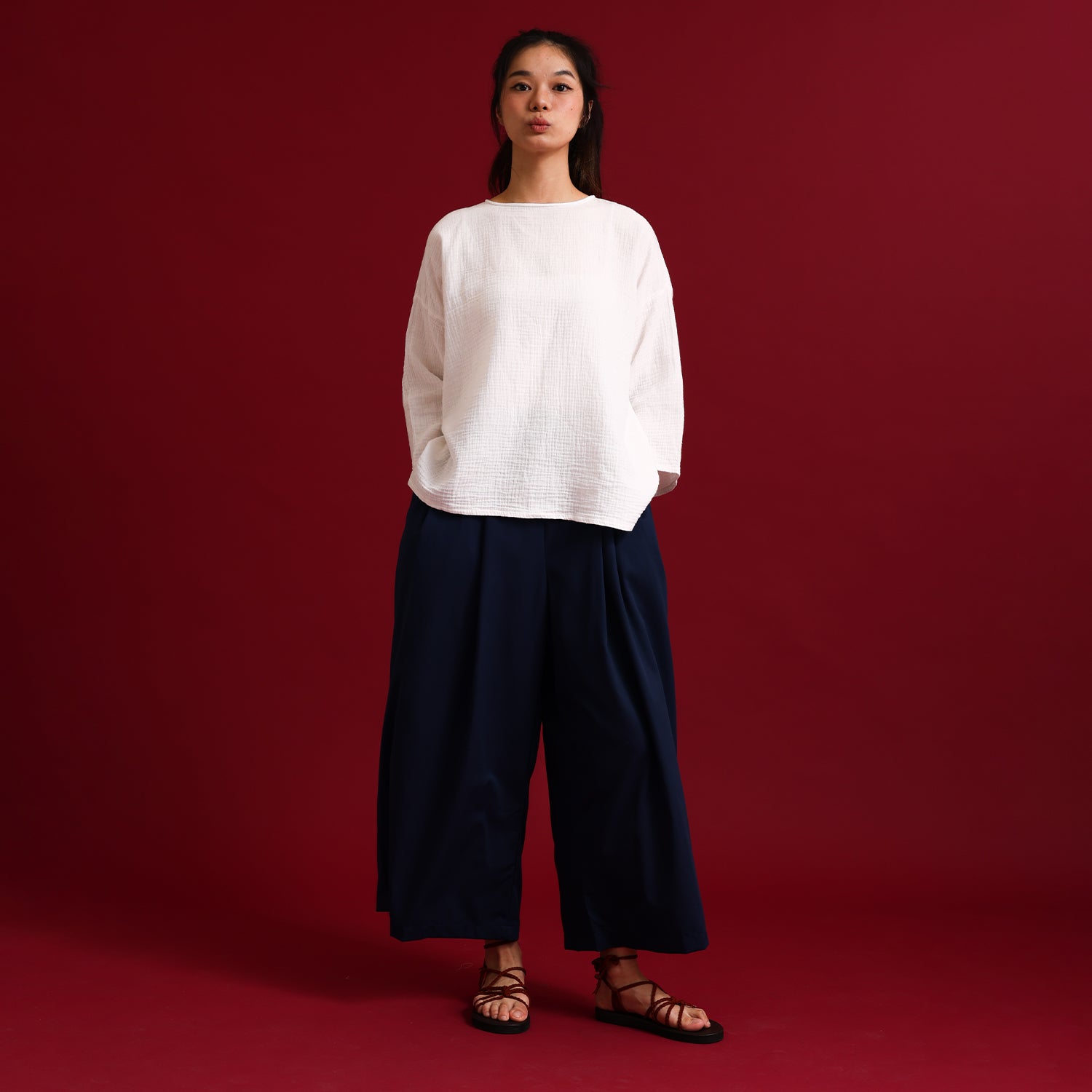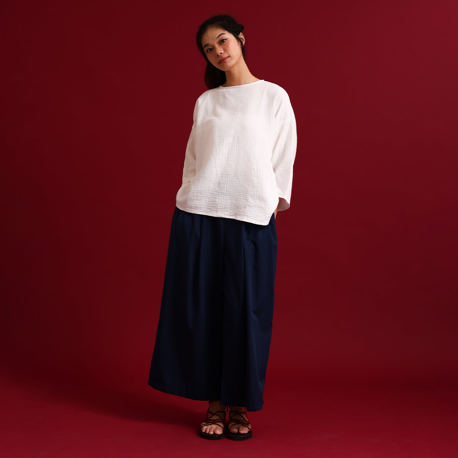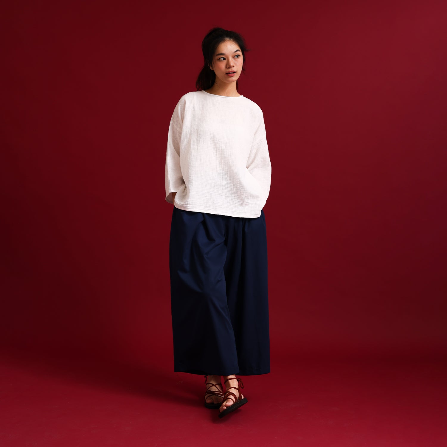 Slip into pure relaxation with the Teduh Pants. Made from soft, breathable cotton, these loose, wide-leg pants are all about easy comfort. With a zip and stretchable waistband, they give you just the right fit while staying super laid-back.