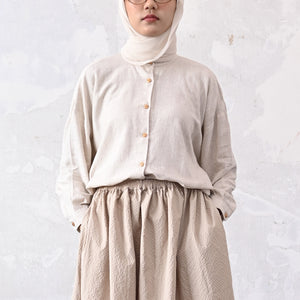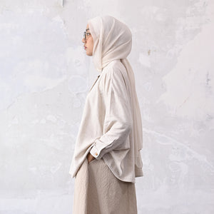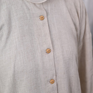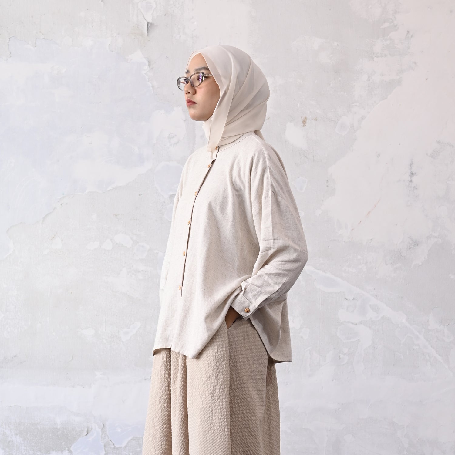Crafted from a rayon–linen blend, it offers a breathable, naturally textured feel that drapes beautifully on every body type. The loose cut ensures relaxed comfort, while the front opening adds a practical touch for easy wear. Available in both long-sleeve (Women) and short-sleeve (Men) versions, the Hara Top transitions effortlessly from casual to refined occasions.