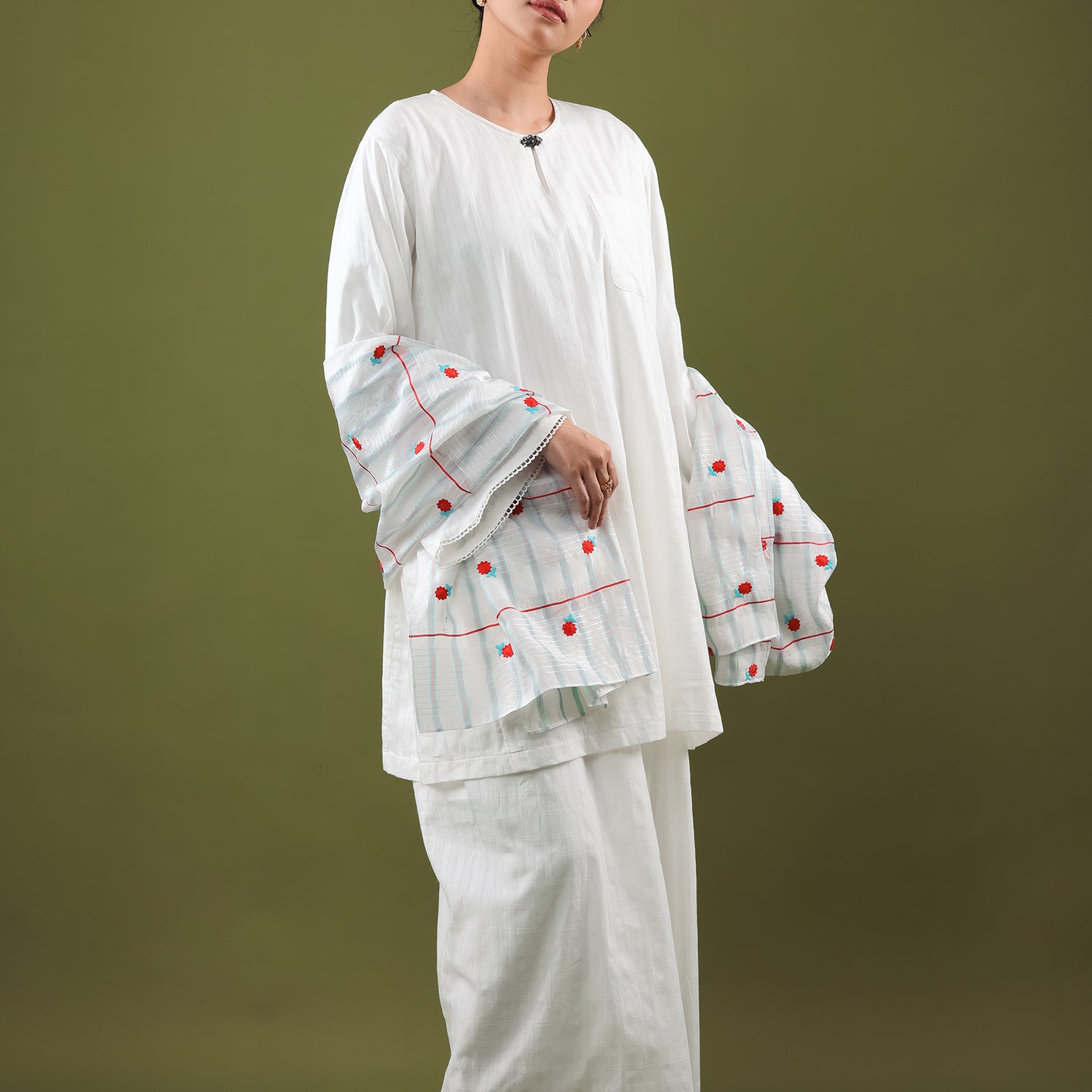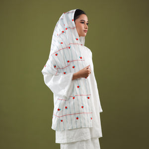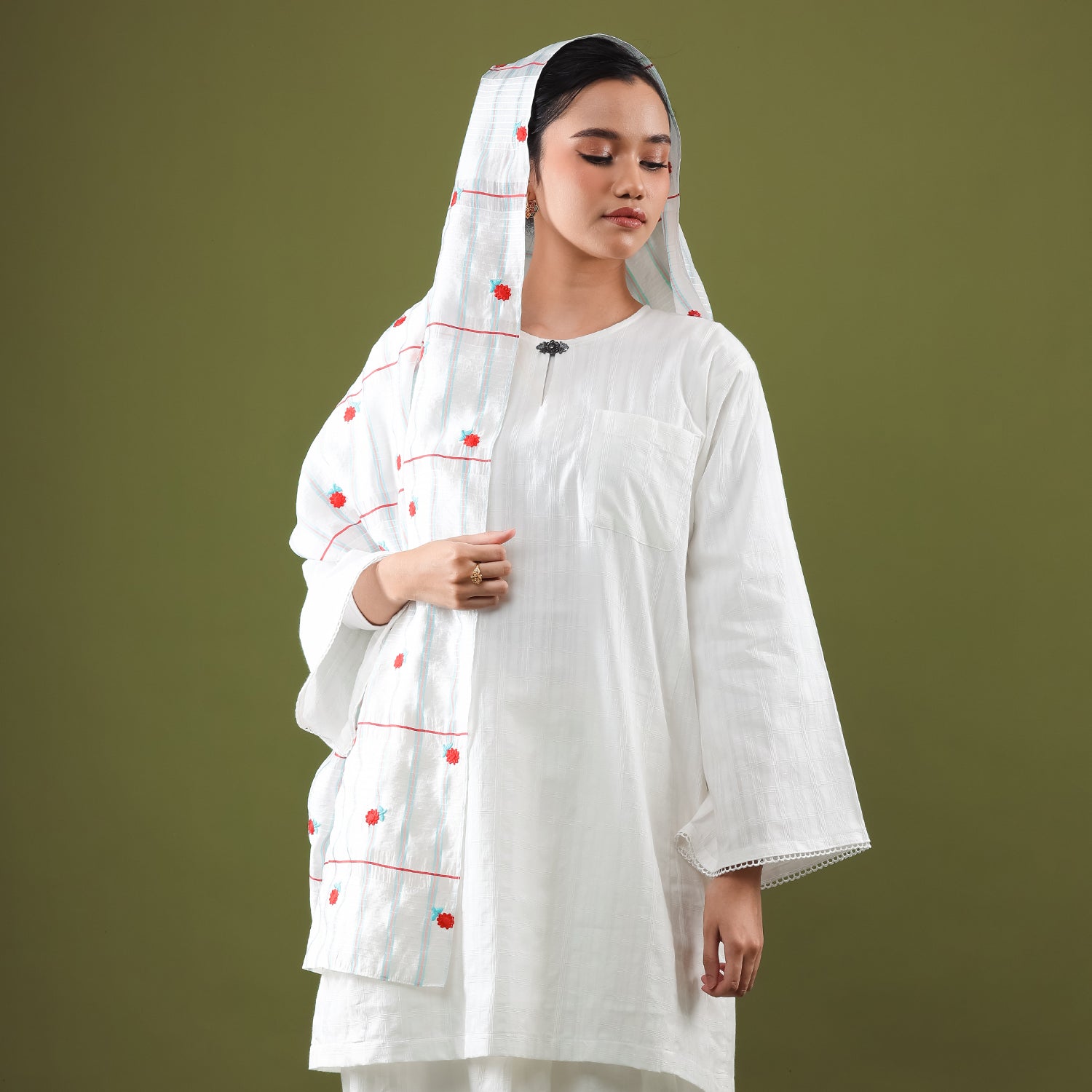 A selendang is the perfect finishing touch for your Hari Raya ensemble and can be styled effortlessly for any occasion. To enhance the wearer's grace and elegance, we designed this shawl with intricate floral embroidery, adding a timeless, classic charm.