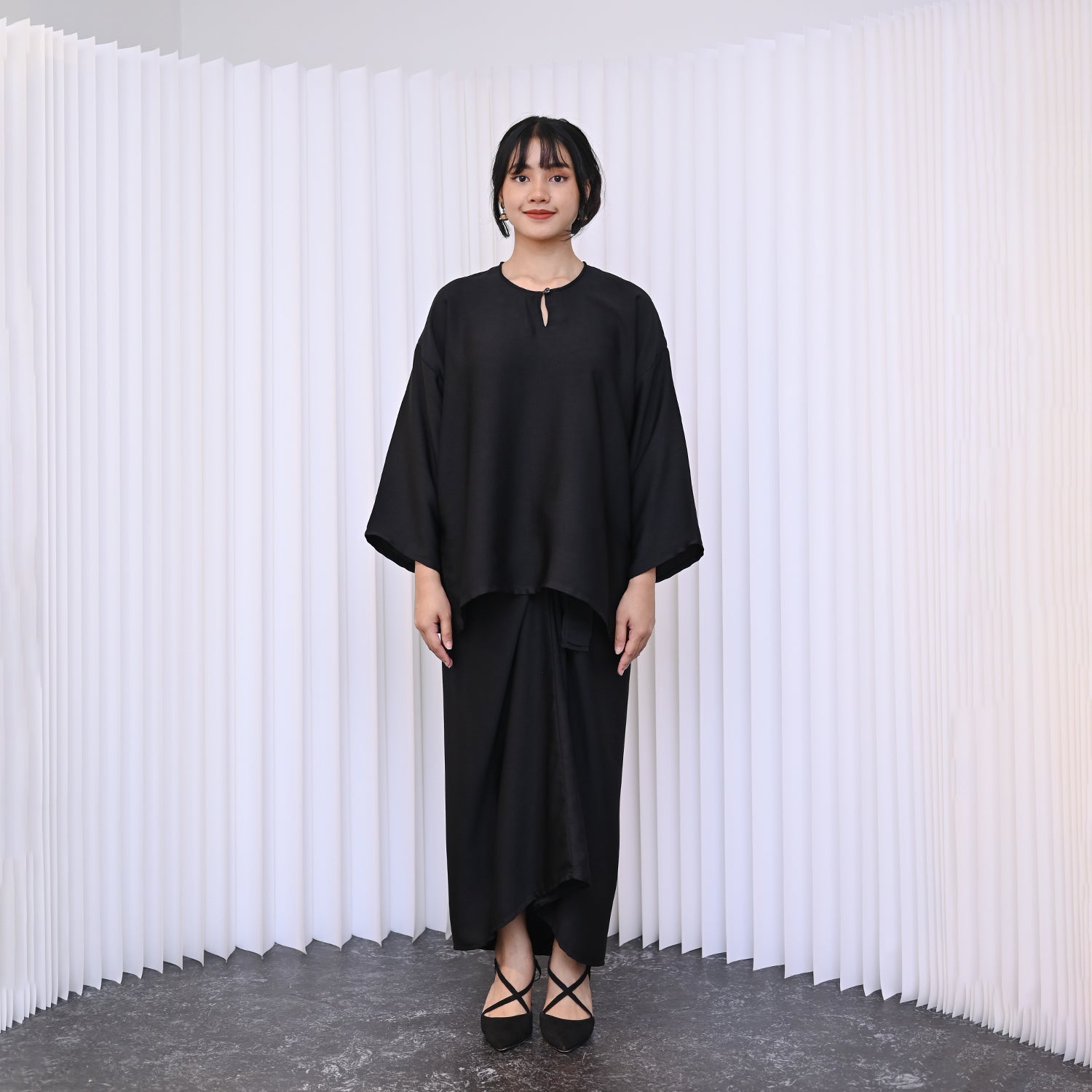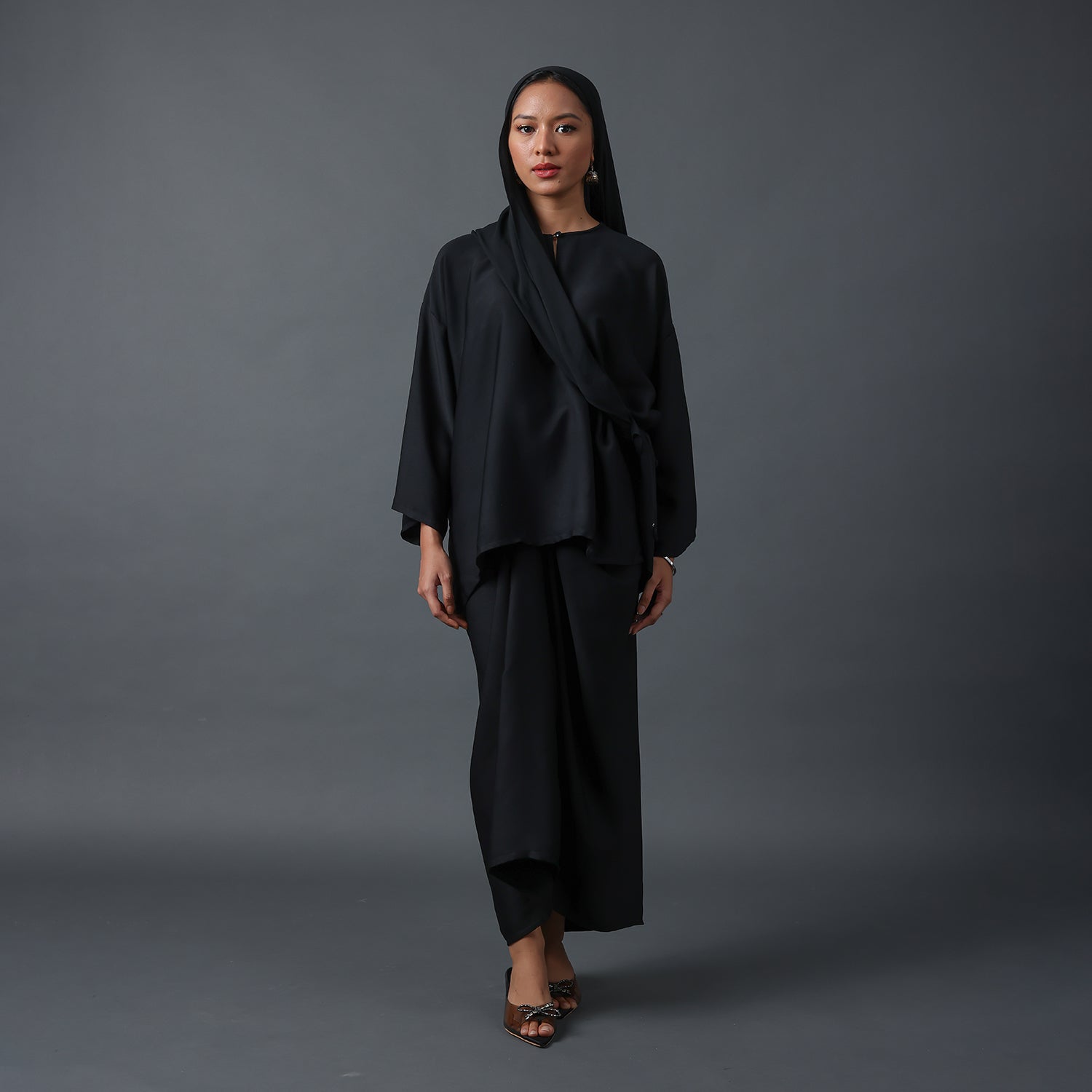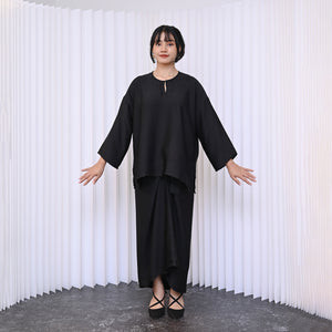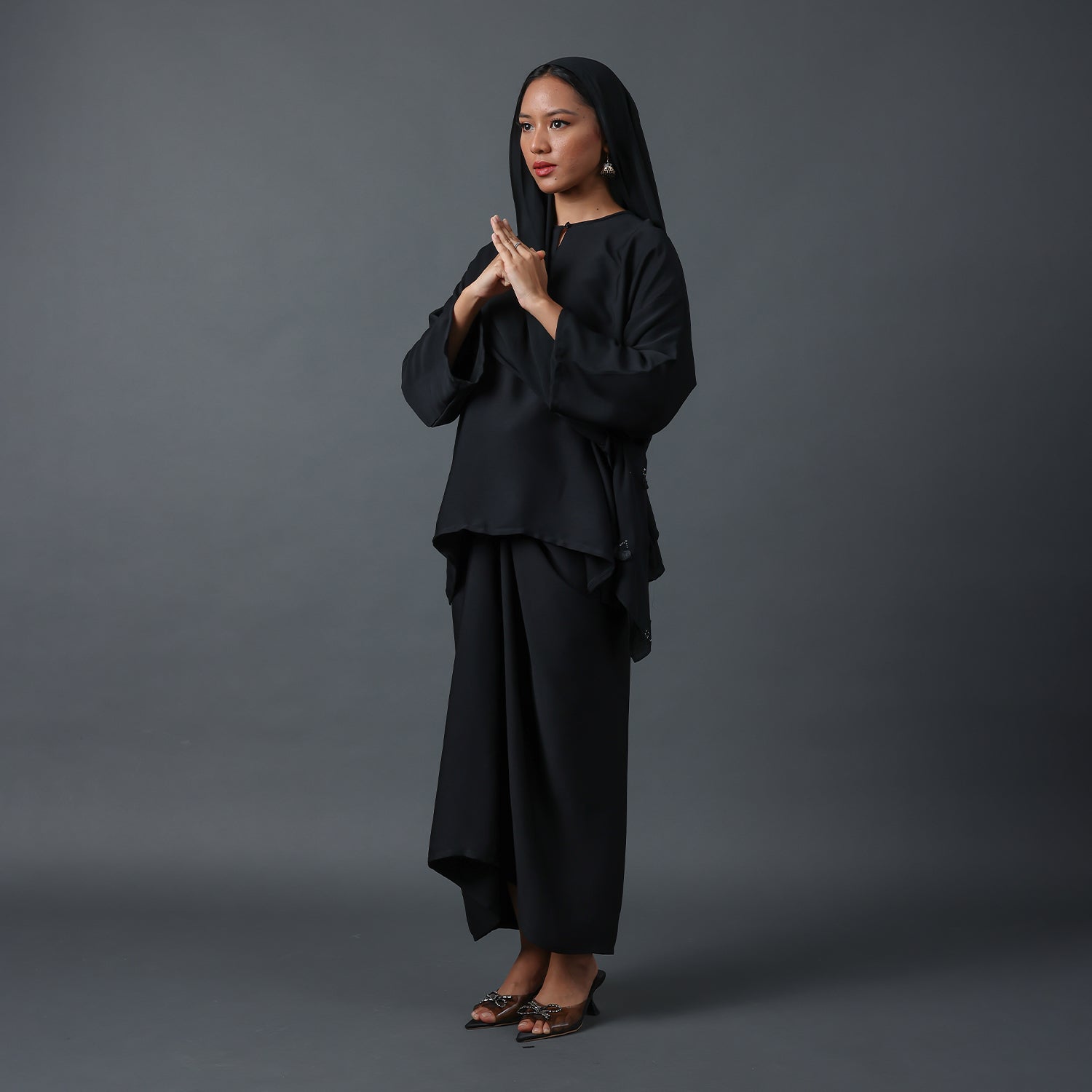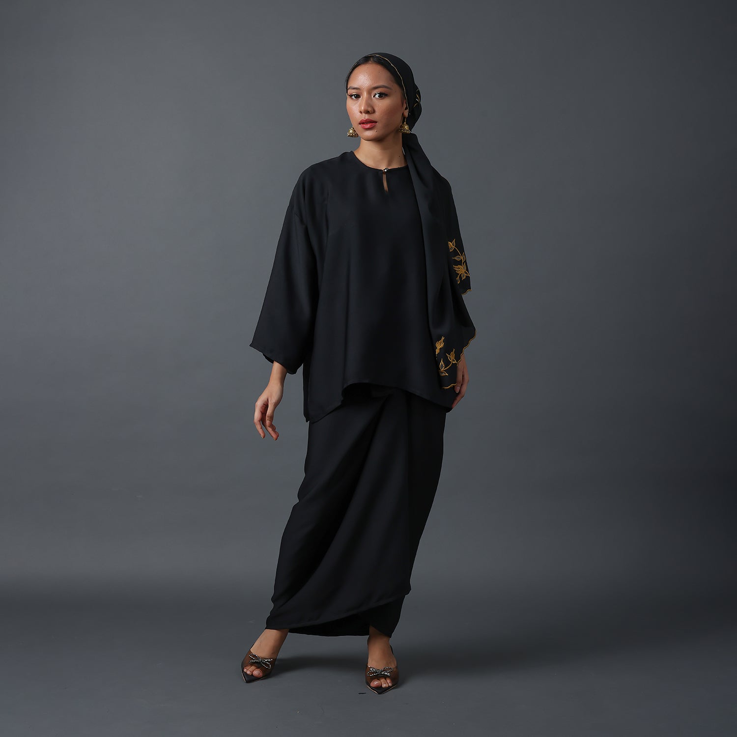 Made from premium rayon polyester. Loose cut top paired with stylish long-laces pareo made Menora Kurung so unique and classy.
