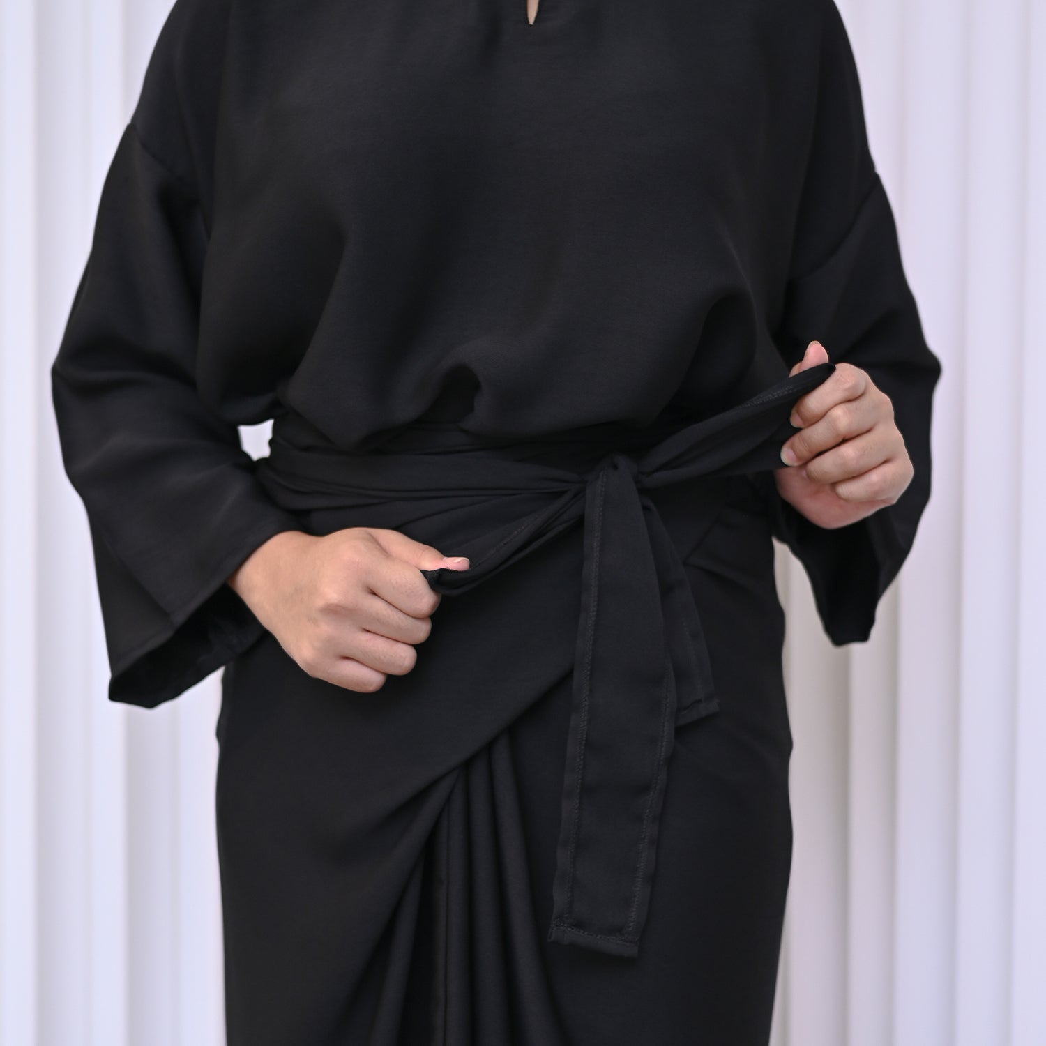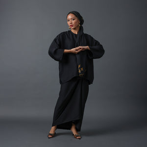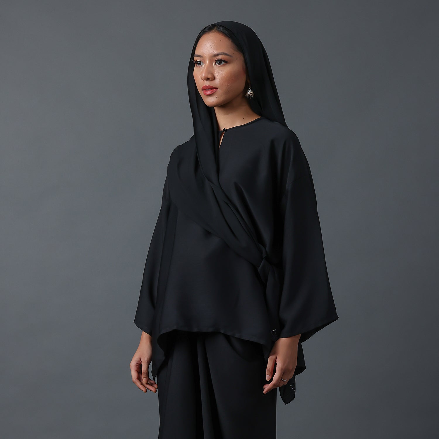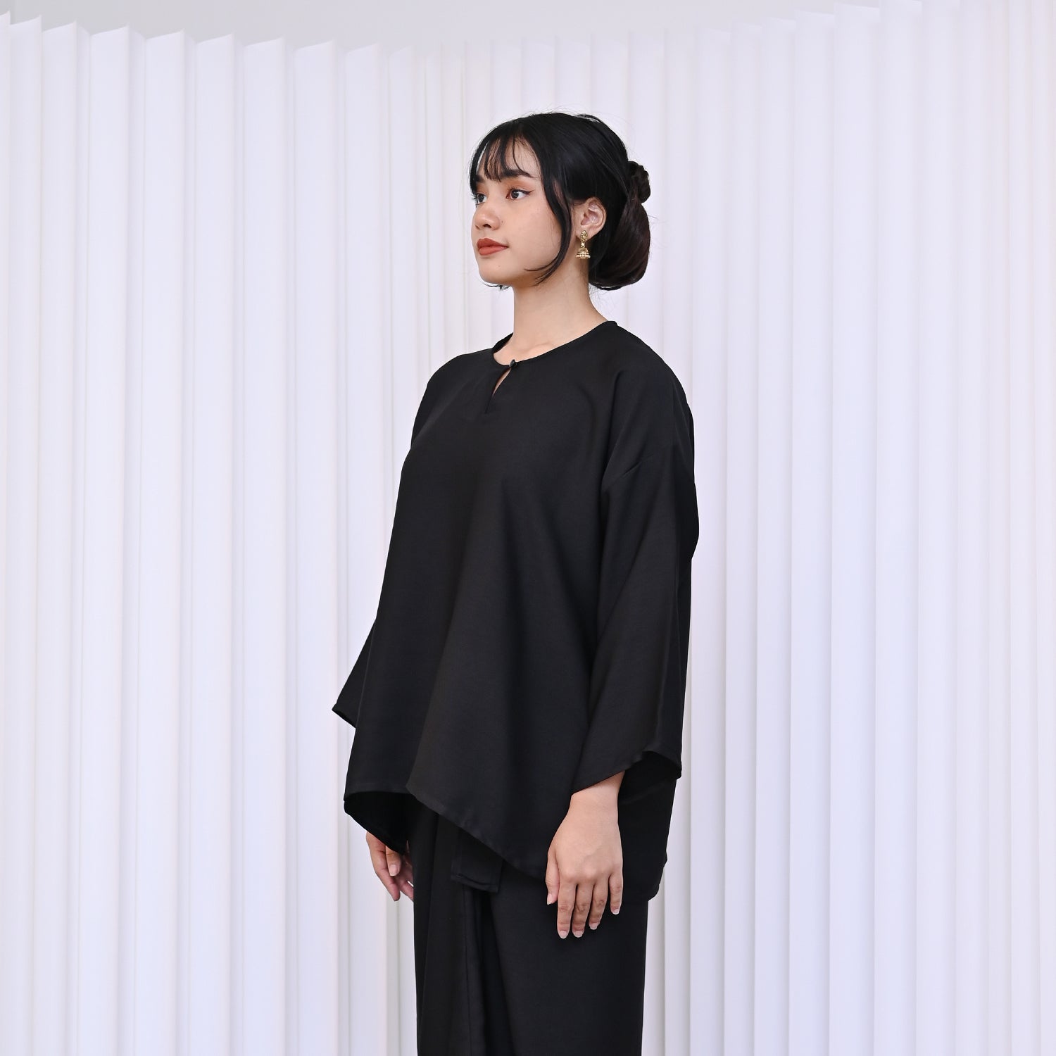 Made from premium rayon polyester. Loose cut top paired with stylish long-laces pareo made Menora Kurung so unique and classy.