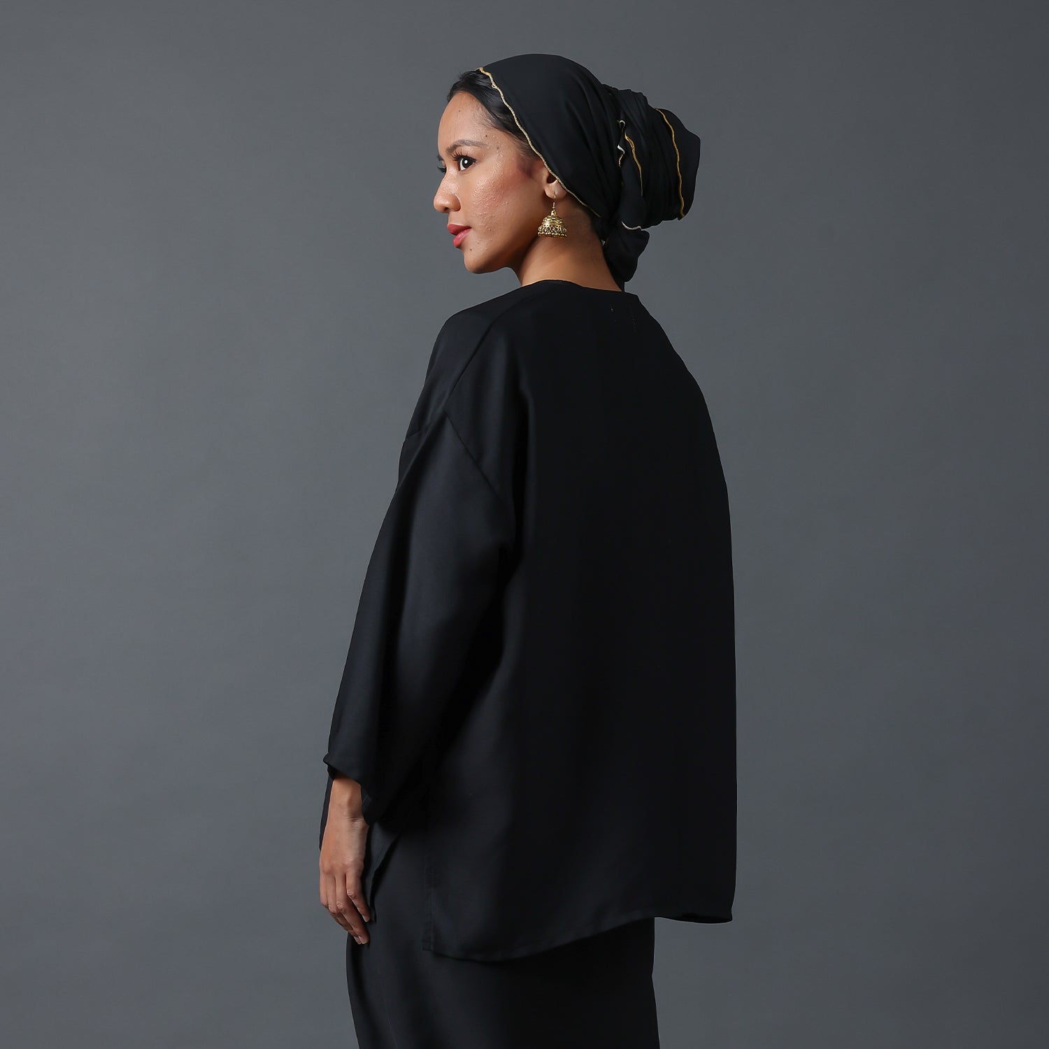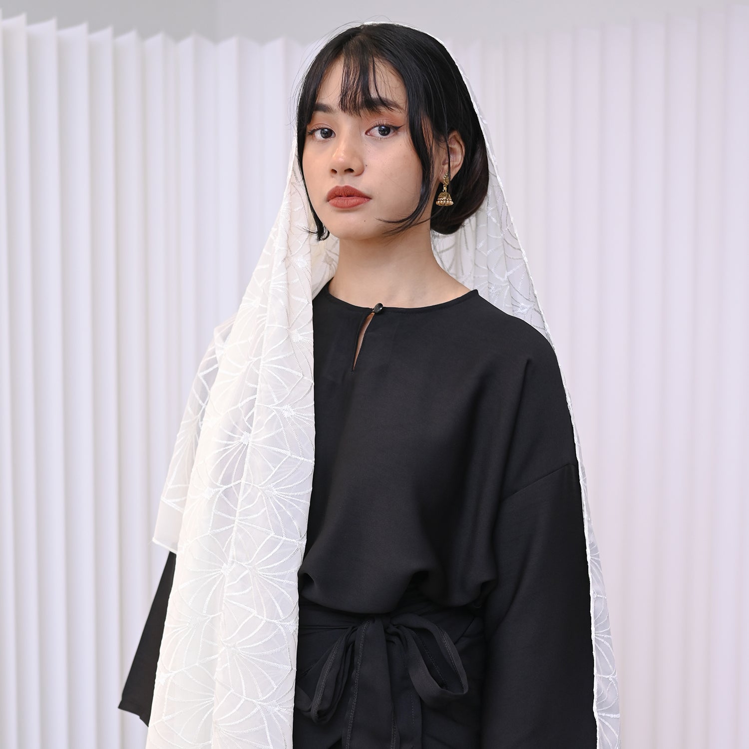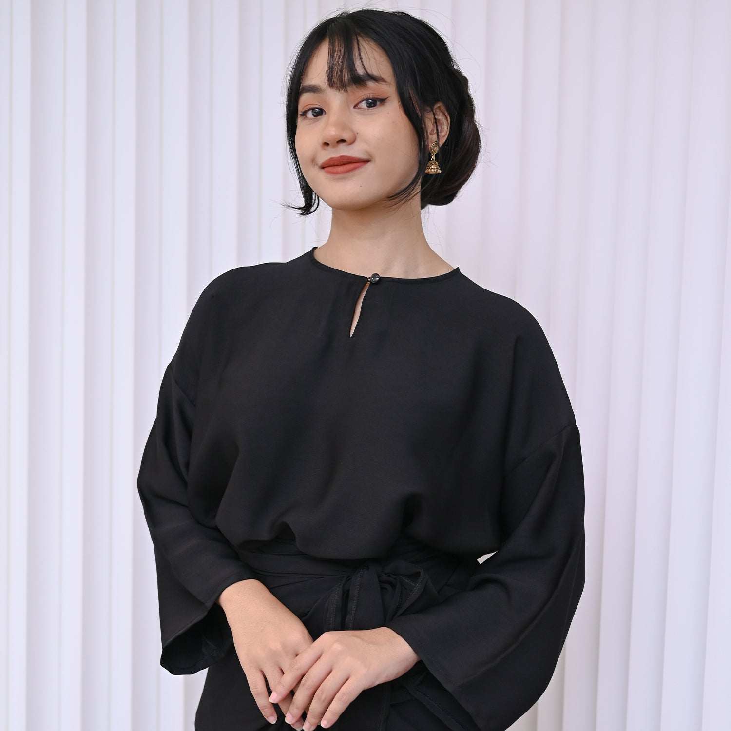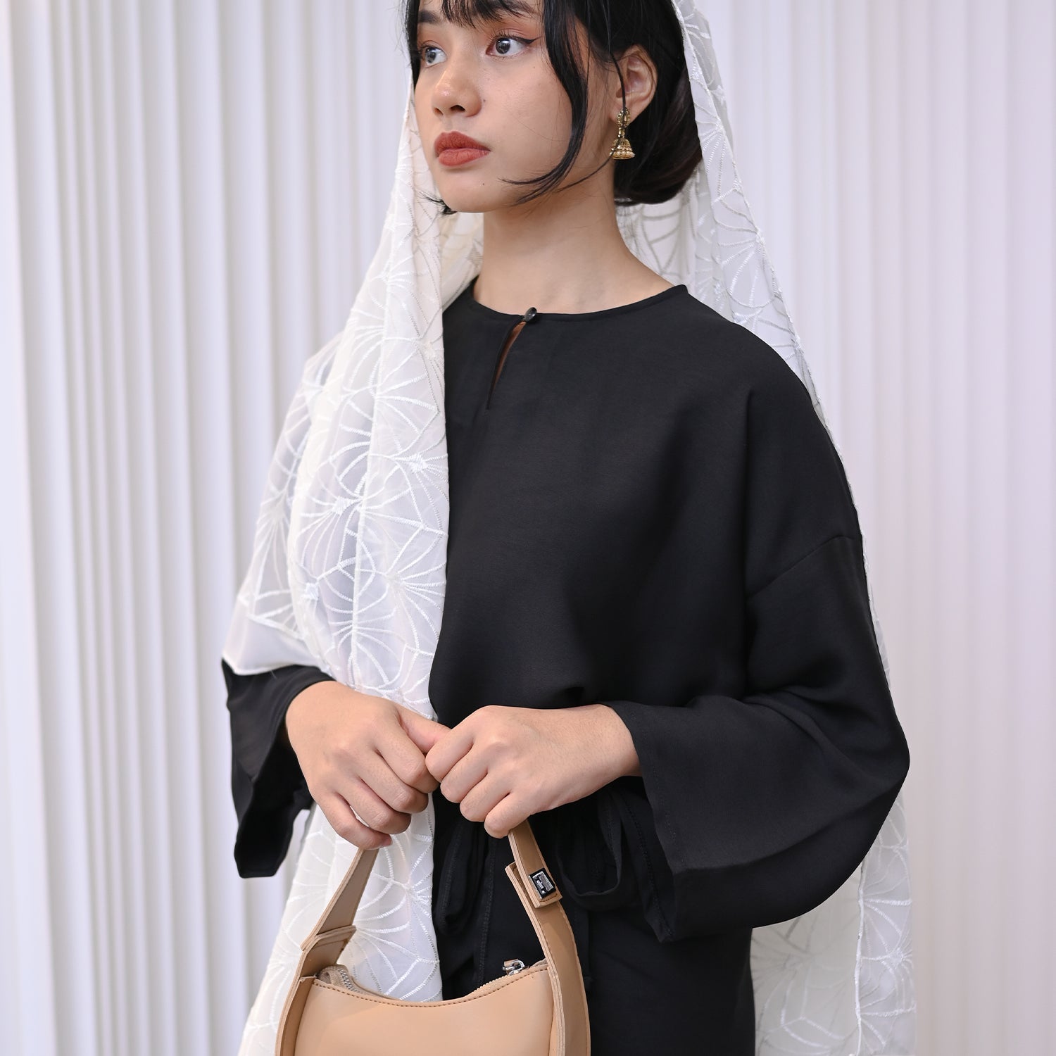 Made from premium rayon polyester. Loose cut top paired with stylish long-laces pareo made Menora Kurung so unique and classy.