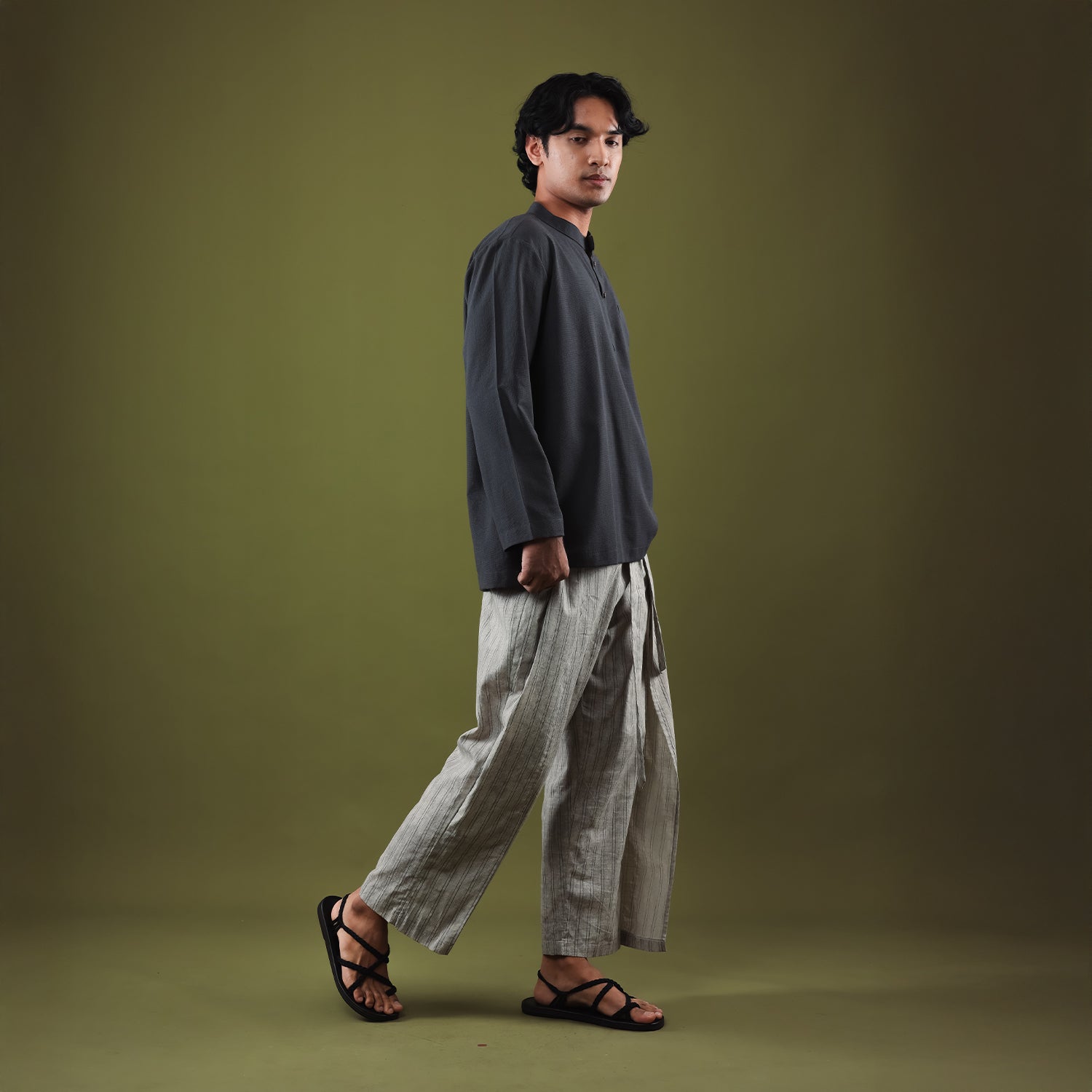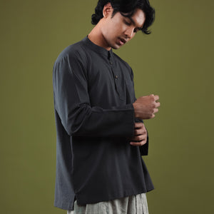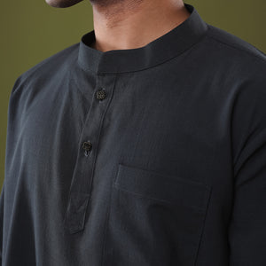 The Mansor Top is crafted from premium cotton fabric, inspired by the classic Baju Melayu silhouette but reimagined with a modern touch. Specially designed buttons add a refined, luxurious feel, enhancing its timeless elegance.