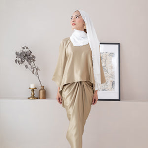 Moira Kurung consist of instant pareo skirt with kaftan loose top. No buckle needed for instant pareo skirt. Tie the knot twice, and you are good to go.