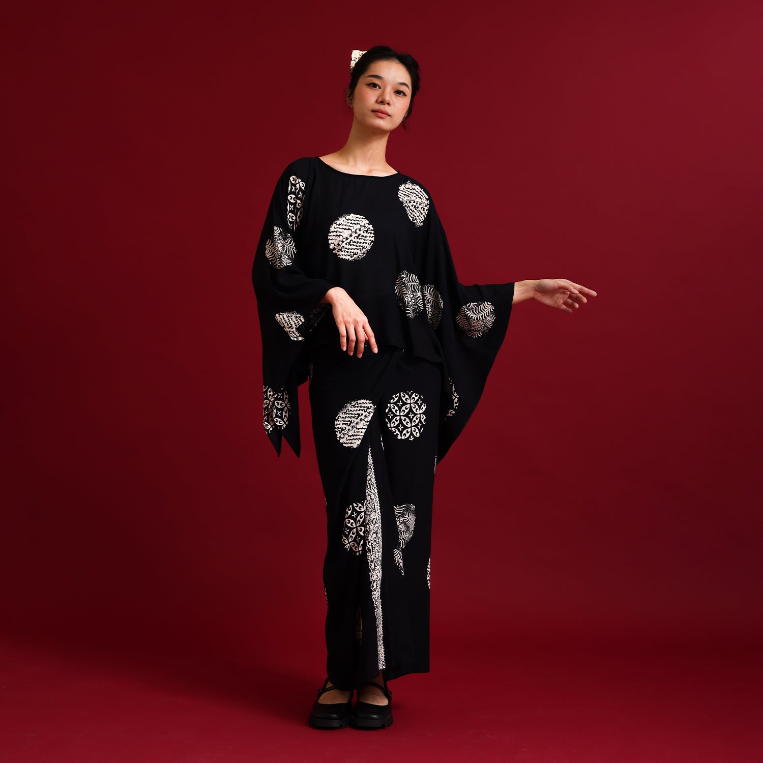 This Macusa consist of instant pareo skirt with kaftan loose top. No buckle needed for instant pareo skirt.