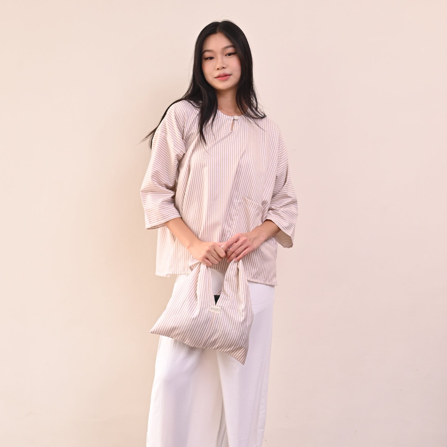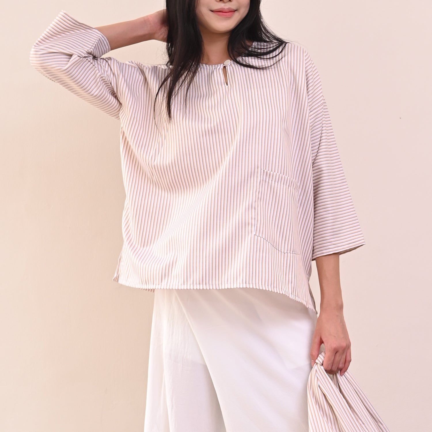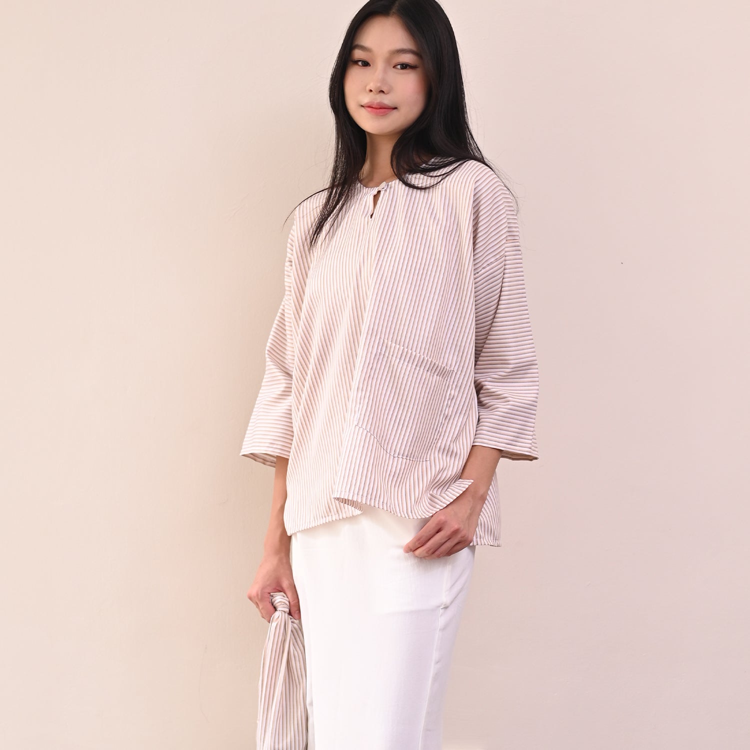 The term "Garis" is derived from the Malay word for "lines" or "stripes," which is perfectly reflected in the design of the Garis Top. Each variant of this top features distinctive parallel line patterns that run through the fabric, creating a visually appealing and elegant aesthetic.