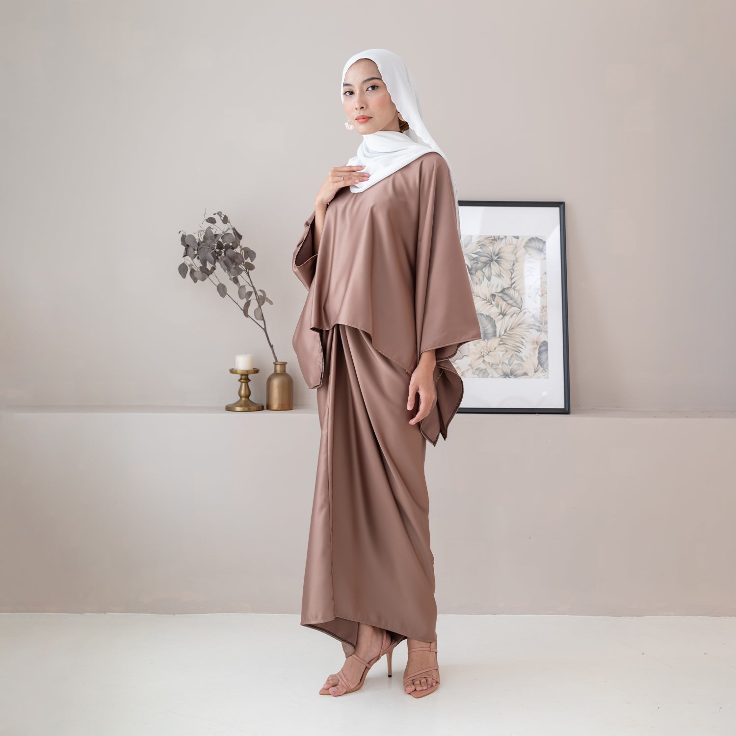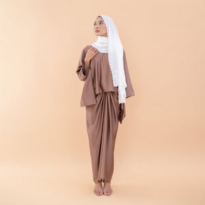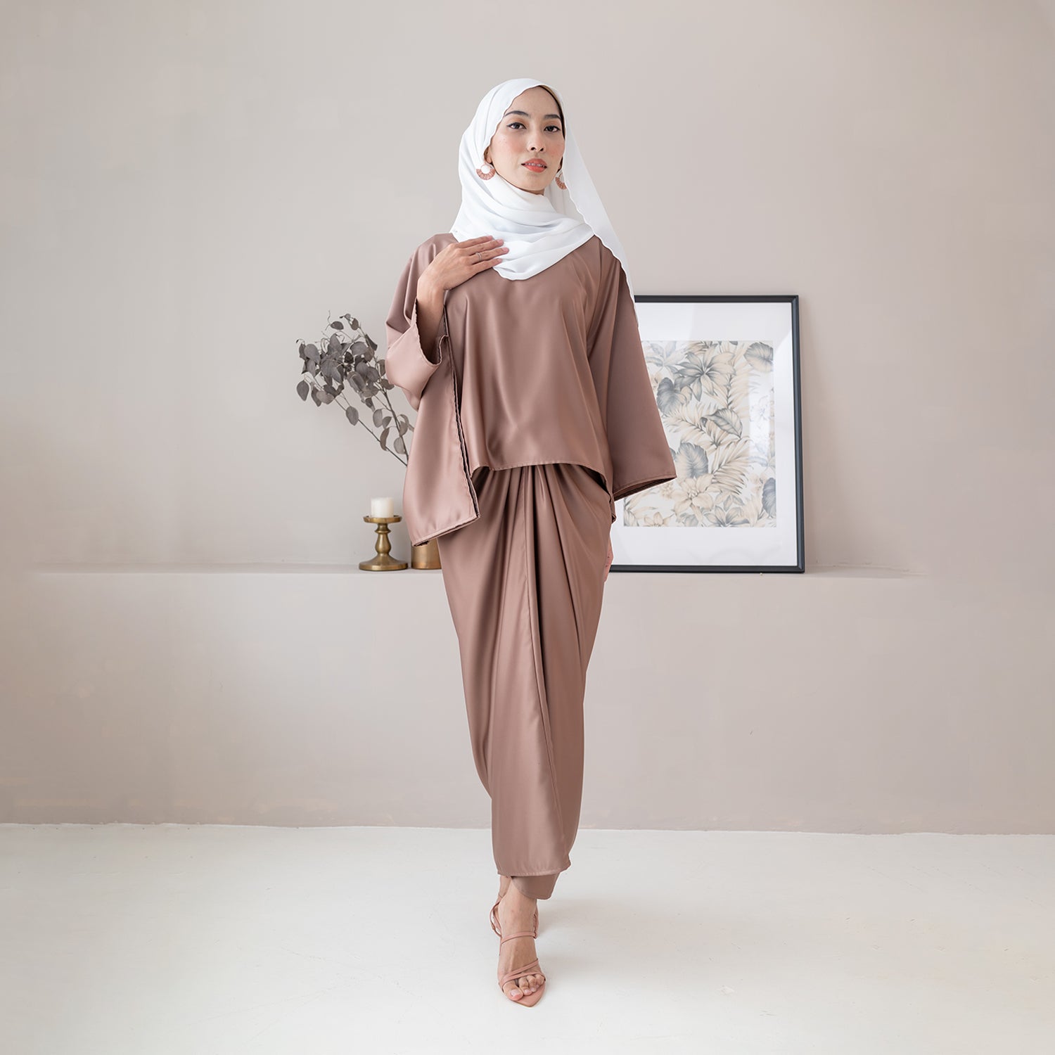 Moira Kurung consist of instant pareo skirt with kaftan loose top. No buckle needed for instant pareo skirt. Tie the knot twice, and you are good to go.