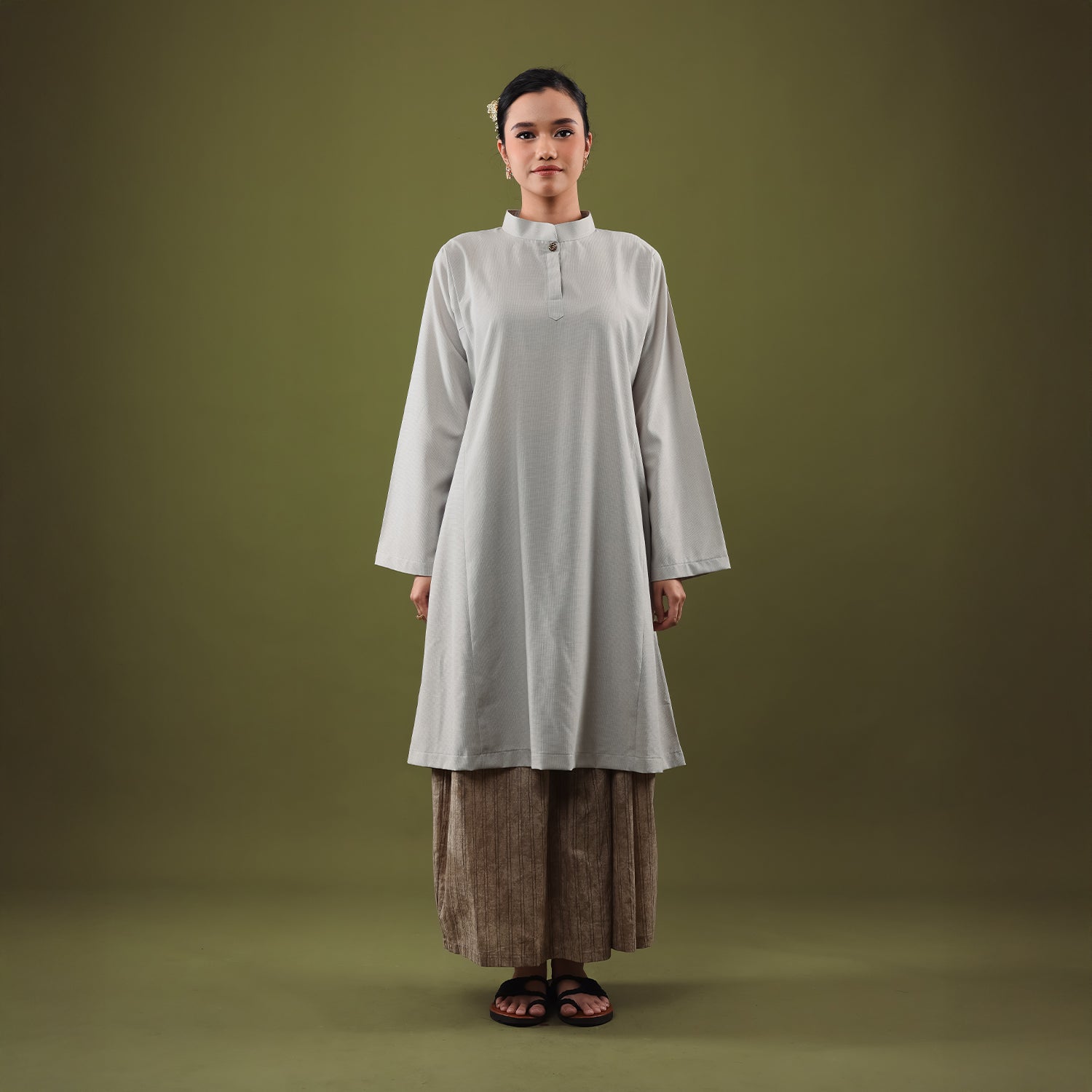 The Rahayu skirt is made from high-quality cotton fabric. Its Retro color makes it versatile enough to be worn on its own for various occasions. Designed with two hidden side pockets, it also features front pleats inspired by traditional kurung patterns, given a modern touch. Pair it with the Rahayu kurung top for a perfectly coordinated look.